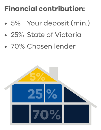 The government pay up to 25% equity in the home as long as you have a 5% deposit, pay stamp duty and can service the loan. In simple terms if you purchase a $600,000 property, you own $450,000 and the government owns $150,000.