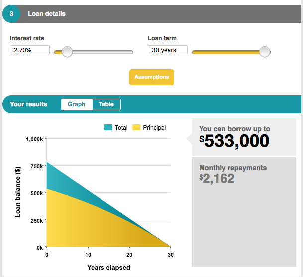 settingsMichelle decides not to buy as she wants to travel instead. Five years pass and Michelle is now ready to buy a home. Interest rates have dropped down to a record low of 2.7% and the bank now allows repayments over 30 years. Her deposit, income and expenses are the same. She is thrilled when told she can borrow $533,000 and buy a home for up to $633,000. But when she looks at what she can buy for her money she discovers that it is the same as five years earlier but it now costs $222,000 more, and will take longer to pay off.